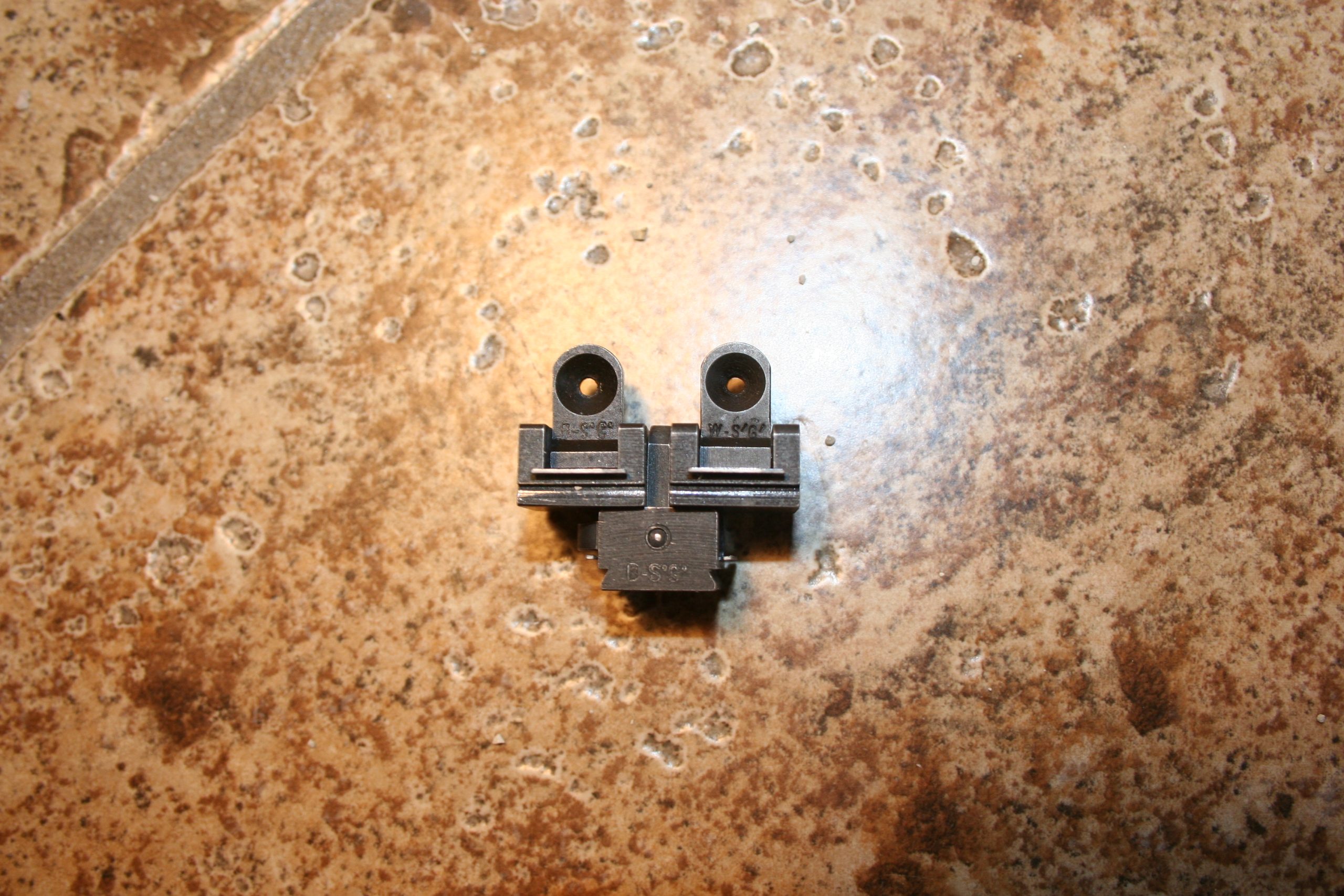 M1 Carbine Flip Sights – Saginiaw S’G’ Coded S on small side and will be coded B-S’G’ , W-S’G’ or RG-S’G’ on the other side of base. Flip is B-S’G’, W-S’G’ or RG-S’G’ or unmarked.