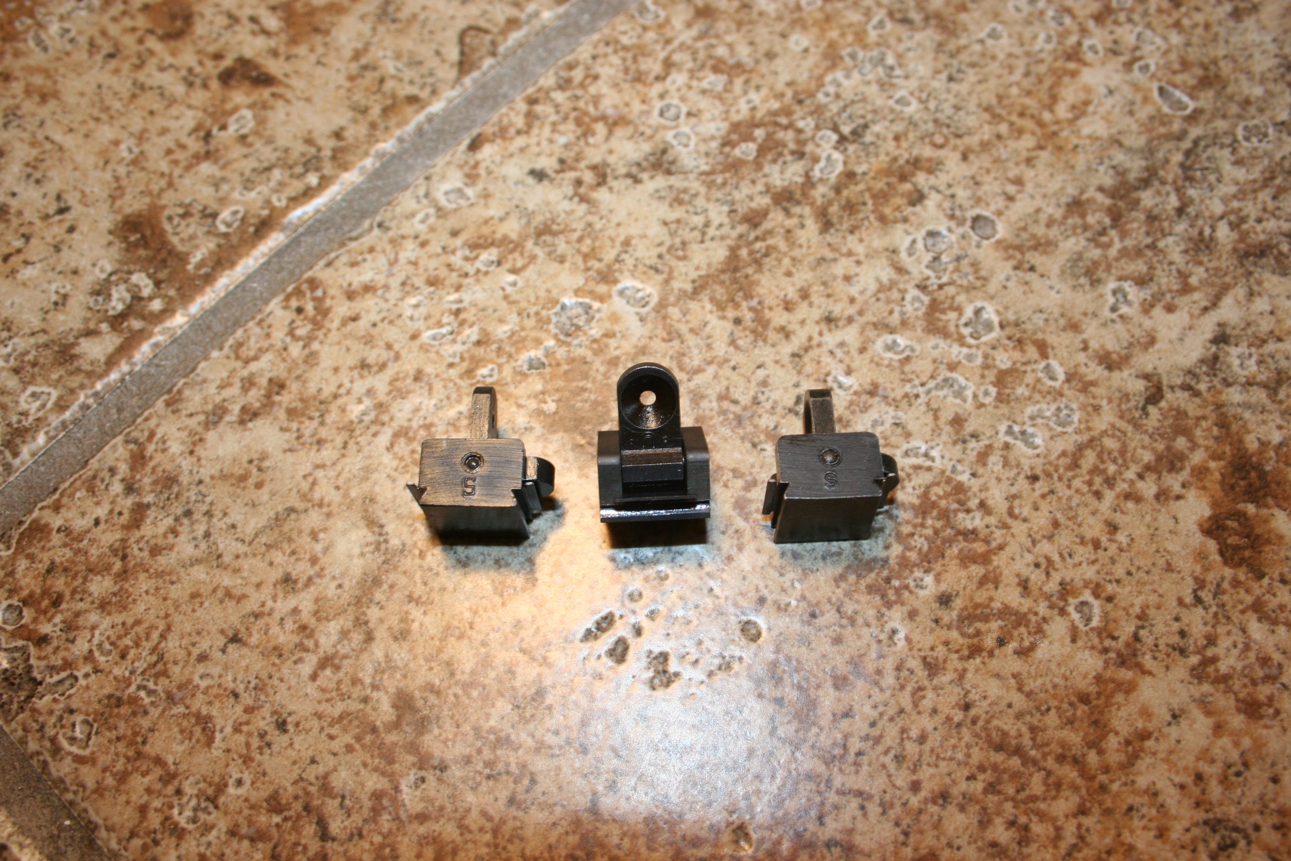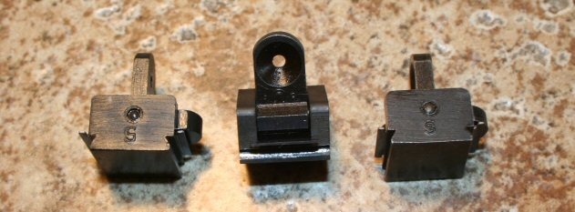 M1 Carbine Flip Sights – Underwood Coded with a S or square S on the small side of the base, The other side was unmarked. The flip was coded with a upside down .U.