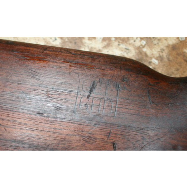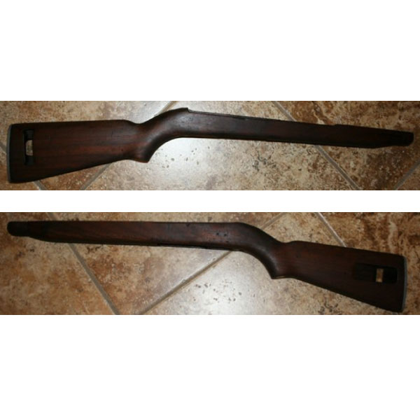 Underwood M1 Carbine, Early underwood I-cut lowwood. This stock comes with a buttplate, has correct cartouch with no wheel, UEF over GHD and is marked RMC in slingwell. Rock-ola made this stock for Underwood. Has rebuild mark on left side.